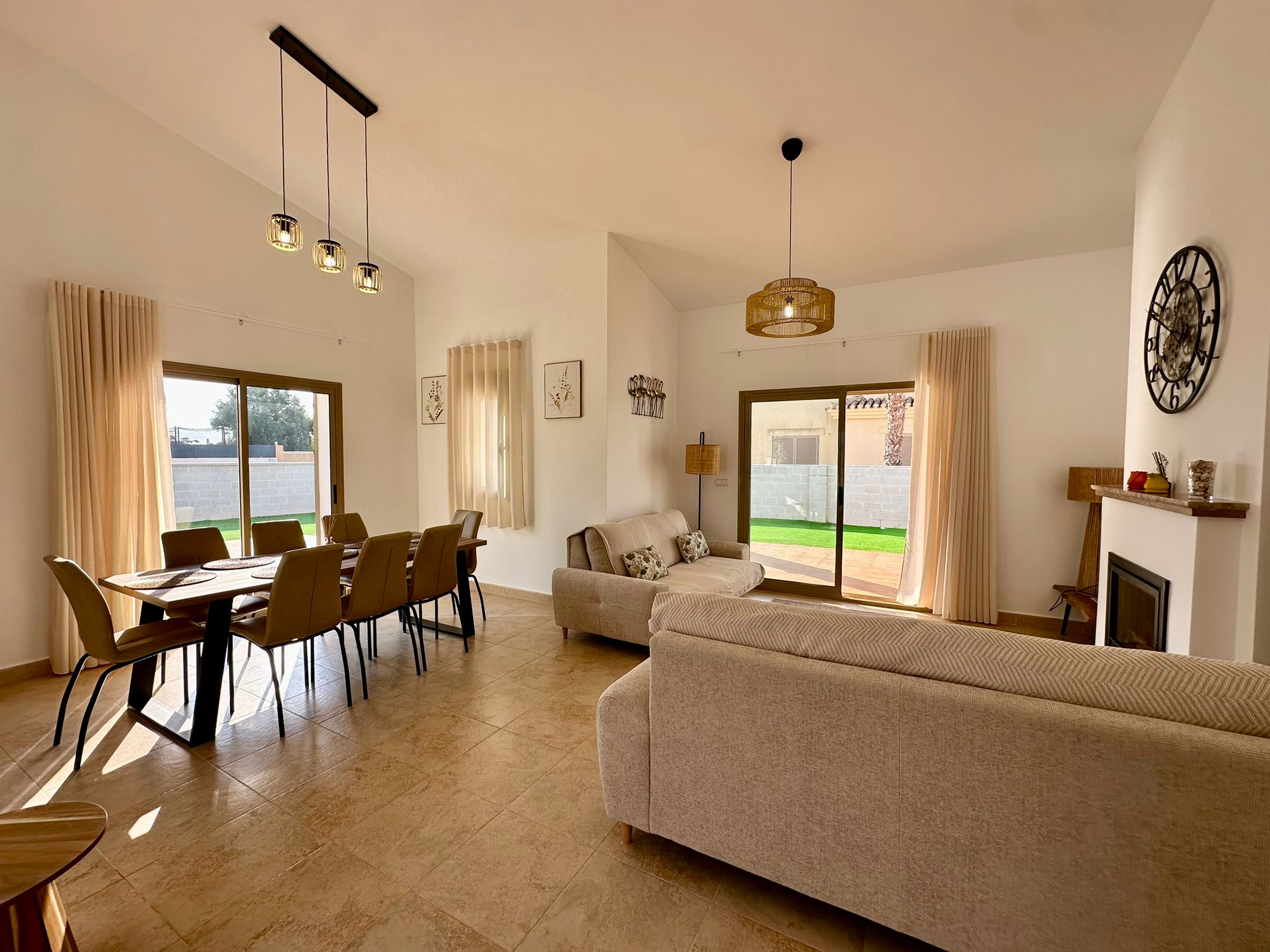 ✔ Duży salon z jadalnią, wysokim sufitem i kominkiem, z bezpośrednim wyjściem do ogrodu